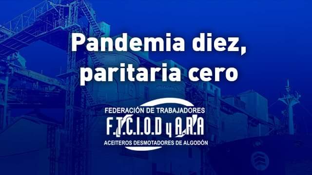 Desde la Federación de Trabajadores del Complejo Industrial Oleaginoso, Desmotadores de Algodón y Afines de la República Argentina informamos a las compañeras y compañeros trabajadores aceiteros, comisiones gremiales internas, delegados de base y sindicatos, que en el marco de la negociación correspondiente a la revisión paritaria salarial prevista del Convenio Colectivo de Trabajo 420/05, los representantes patronales de las cámaras CIARA, CIAVEC y CARBIO informaron que su oferta salarial es cero. Esto es, se niegan a negociar cualquier tipo de aumento.