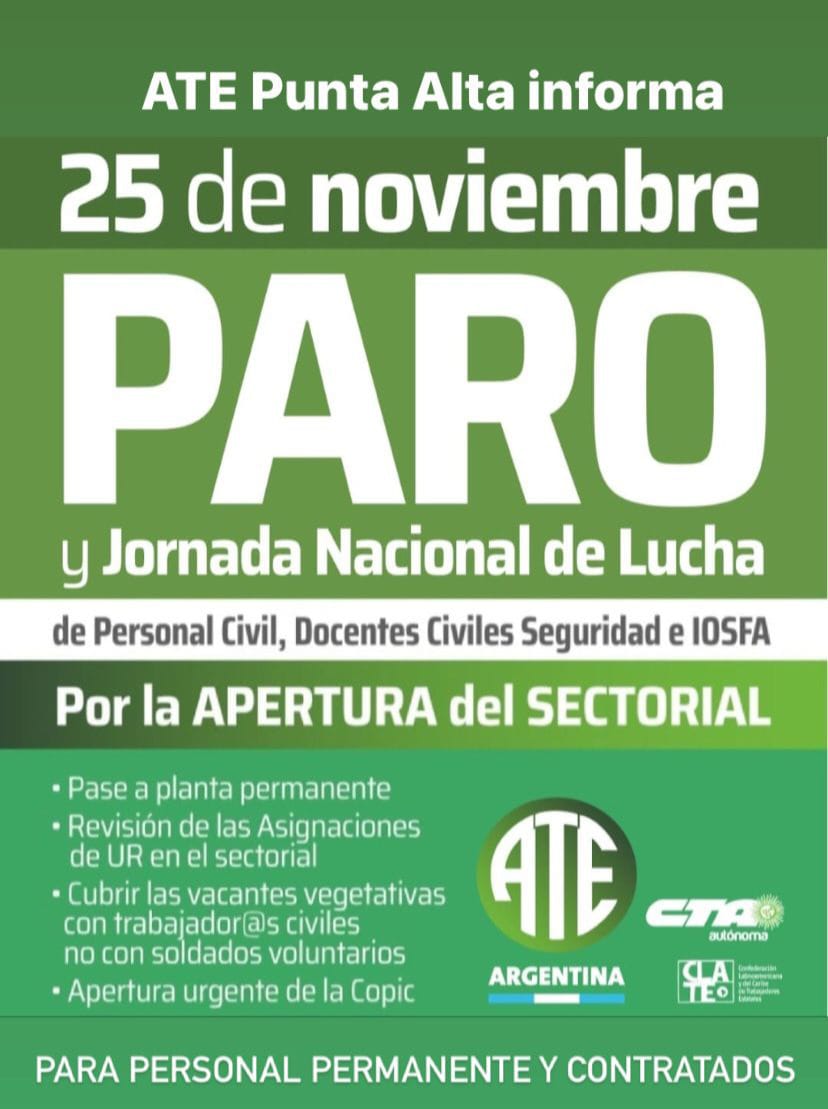 la problemática de los trabajadores civiles y mañana se hace la jornada de lucha desde Ushuaia hasta Jujuy para general por el salario bajo y más puntos del trabajador civil