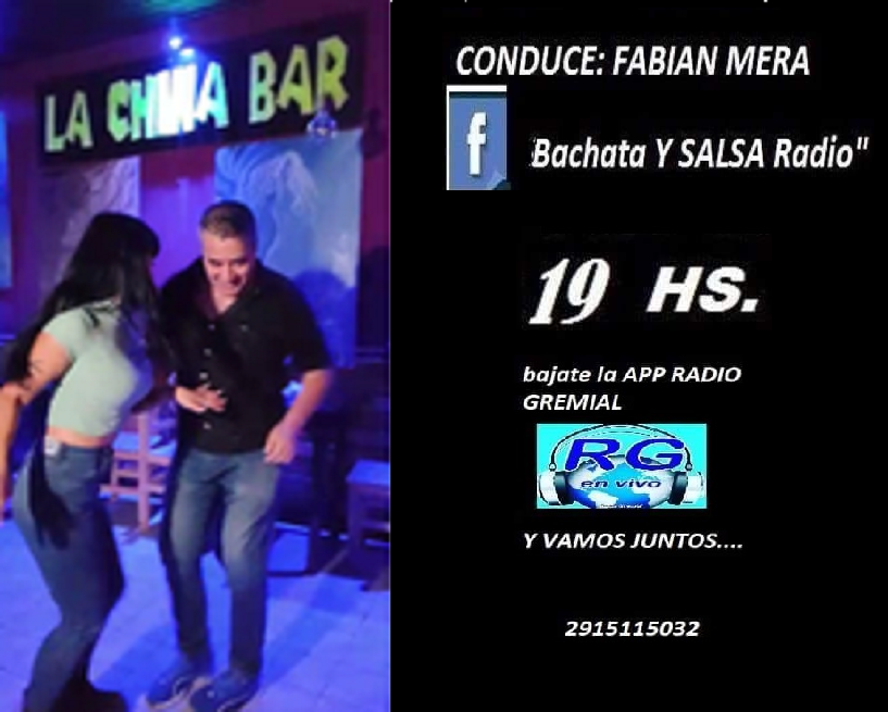 ActualidadBACHATA Y SALSA RADIO DESDE ARGENTINA PARA TODO EL MUNDO FABIAN MERA3 años atrás01 minutos FacebookXWhatsAppYA ESTAMOS COMPARTIENDO BACHATA Y SALSA RADIO CONDUCE: FABIAN MERA ESCUCHA EL PROGRAMA DESDE CUALQUIER PARTE DEL MUNDO PONCHANDO ACA: http://www.radiogremial.com.ar/radio/Player.html MUY BUENAS TARDES A TODOS !! .. #bachata #salsachallenge #salsa Comparte esto: Haz clic para compartir en Facebook (Se abre en una ventana nueva) Facebook Haz clic para compartir en X (Se abre en una ventana nueva) X Haz clic para compartir en instagram (Se abre en una ventana nueva) instagram Me gusta esto:Me gusta Cargando... Navegación de entradas Anterior: La obra social de los trabajadores rurales Osprera firmó un convenio de pago con una quita de 600 millones que «mejora sustancialmente las prestaciones para los afiliados»Siguiente: COMUNICADO Dip. Natalia Dziakowski- Pediatría Hospital Penna :KICILLOF DEBE ATENDER LAS URGENCIAS DEL PENNA