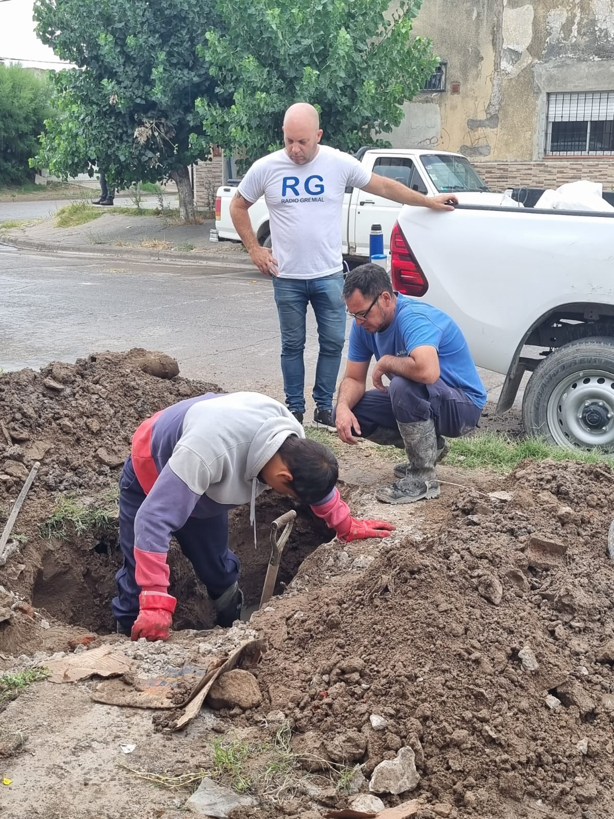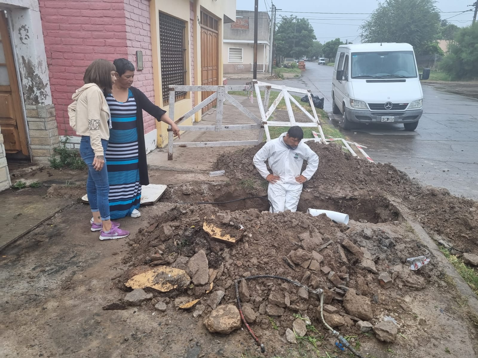 en una obra de cambio de caños cloacales de un domicilio que habia sido afectado, se estan llevando adelante por ABSA.