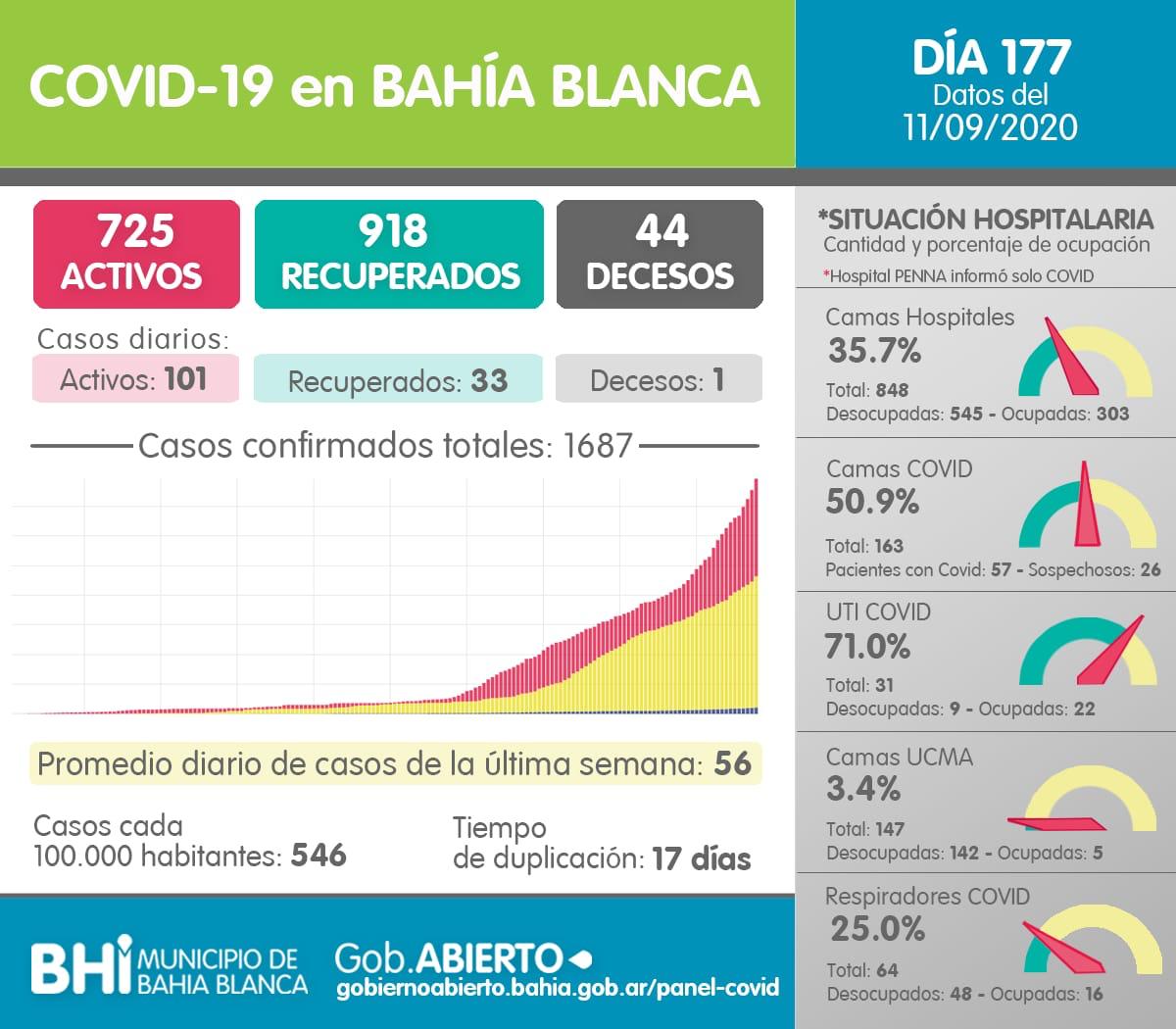 Este sábado se sumaron 101 casos de coronavirus en Bahía Blanca. Además, se registró una nueva muerte y 33 pacientes recuperados.