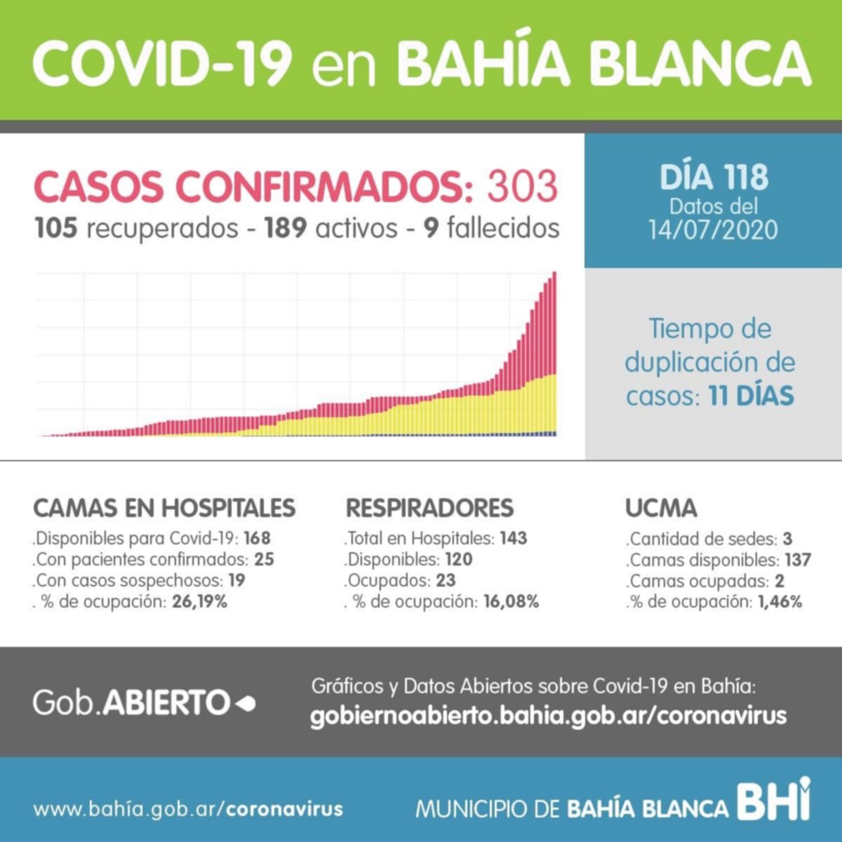 Los casos registrados en la ciudad son 303, de los cuales 189 están activos, 105 recuperados y 9 fallecidos.
