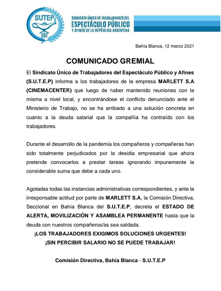 ActualidadCOMUNICADO DEL SUTEP BAHIA BLANCA Radio Gremial5 años atrás5 años atrás01 minutos FacebookXWhatsApp Comparte esto: Haz clic para compartir en Facebook (Se abre en una ventana nueva) Facebook Haz clic para compartir en X (Se abre en una ventana nueva) X Haz clic para compartir en instagram (Se abre en una ventana nueva) instagram Me gusta esto:Me gusta Cargando... Navegación de entradas Anterior: ONG CANGREJITO DE BARRO DE BAHIA BLANCASiguiente: Este 24 de marzo, a 45 años del golpe genocida, #PlantamosMemoria