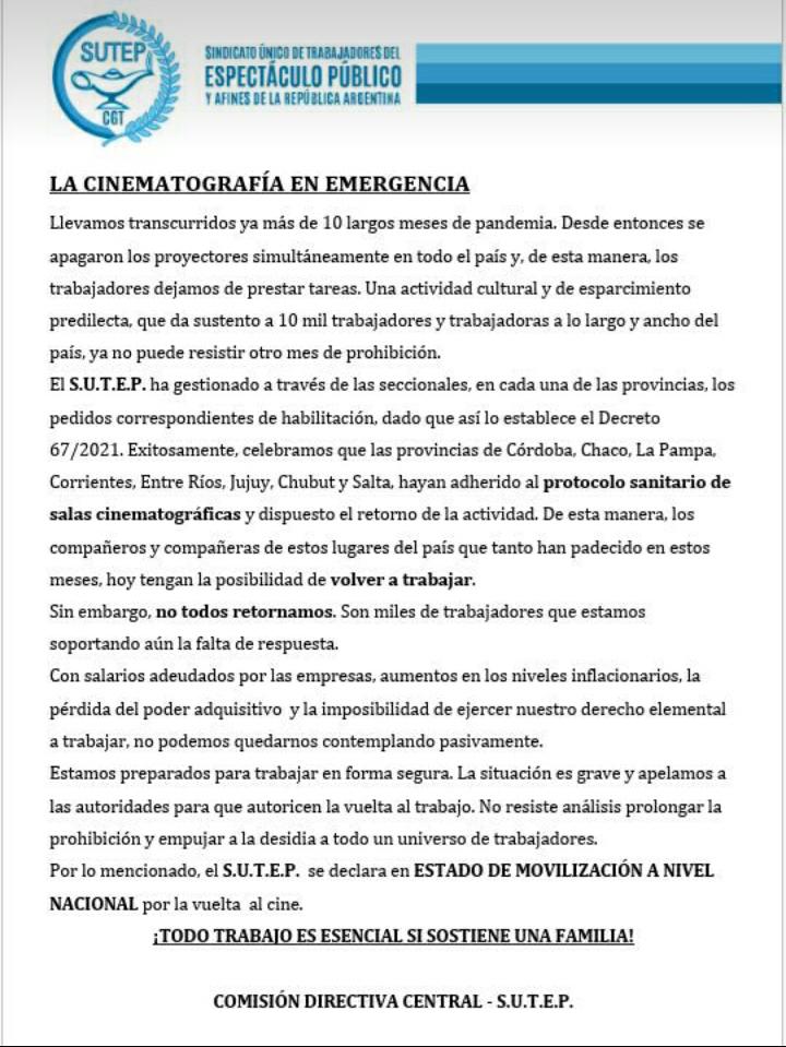 NacionalesSindicalesComunicado del SUTEP//La Cinematografía en Emergencia!!! Radio Gremial5 años atrás5 años atrás01 minutos FacebookXWhatsAppSindical/ Nacional Fuente: Radio Gremial Comparte esto: Haz clic para compartir en Facebook (Se abre en una ventana nueva) Facebook Haz clic para compartir en X (Se abre en una ventana nueva) X Haz clic para compartir en instagram (Se abre en una ventana nueva) instagram Me gusta esto:Me gusta Cargando... Navegación de entradas Anterior: Bahia Blanca// Comunicado prensa UTN-BHI universidad tecnológica nacional /Facultad Regional bahía BlancaSiguiente: La FESITCARA cerró la paritaria 2020 con aumento del 38% para trabajadores de la carne