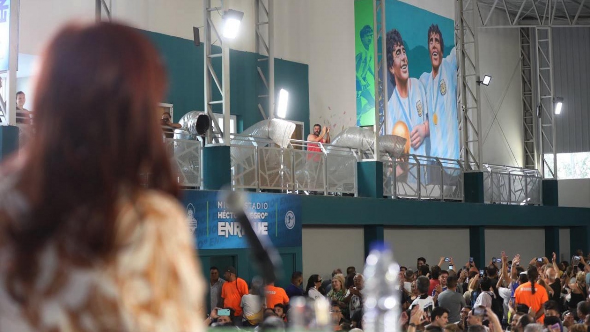 La vicepresidenta fue invitada por el intendente Jorge Ferraresi para participar de la inauguración del Polideportivo Municipal que lleva el nombre de «Diego Armando Maradona» en el barrio Villa Corina de Villa Dominico. AG.TELAM