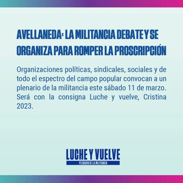 A propósito de candidaturas, la presentación de Cristina será justo el día antes del plenario de la militancia “Luche y Vuelve” en la UTN de Avellaneda donde intendentes, agrupaciones kirchneristas, dirigentes sindicales y sociales se reunirán para organizar la lucha contra la proscripción de la vice y proclamar la necesidad de su postulación. Ya elaboraron un documento -adelantado por El Destape– en el que se subrayará que “con Cristina vivíamos mejor” y que “la moderación no es nuestro idioma”, una respuesta directa al presidente Alberto Fernández.