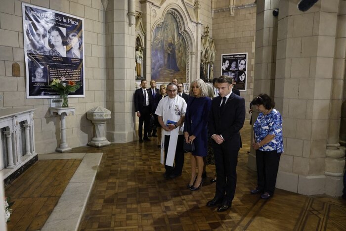 El presidente de Francia hizo la visita antes de su encuentro con Milei en la Casa Rosada. Su presencia en la parroquia en la que Alfredo Astiz, visitado por diputados del oficialismo, marcó a las monjas francesas es un mensaje contra el negacionismo. Se comprometió con los familiares a transmitirle a su par argentino la inquietud por las políticas de memoria, verdad y justicia.