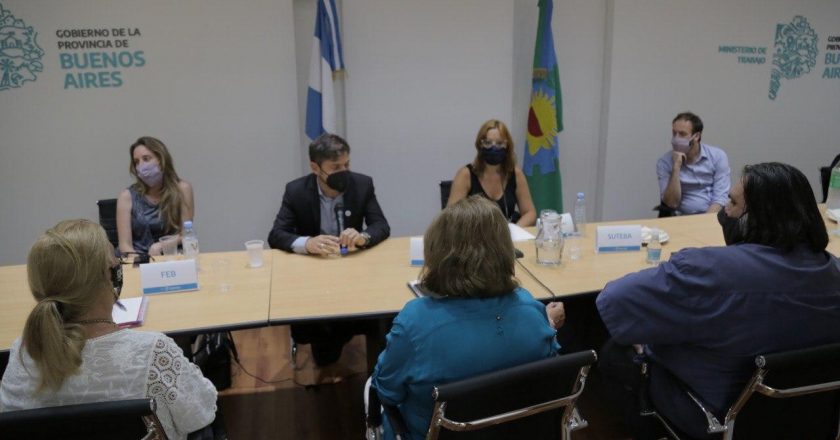Los sindicatos docentes bonaerenses asistieron al ministerio de Trabajo provincial este viernes a la noche para recibir la propuesta que elaboró el gobierno encabezado por Axel Kicillof. Antes de terminar el encuentro el gobernador se presentó a conversar con los dirigentes gremiales.