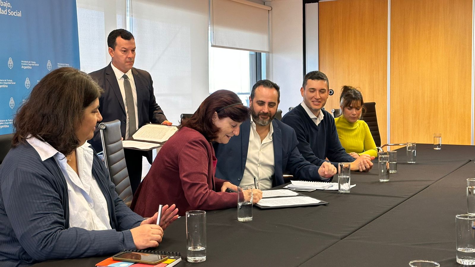 El acuerdo se rubricó en el Ministerio de Trabajo, con la presencia de la Ministra Raquel «Kelly» Olmos, del Ministro de Transporte, Diego Giuliano, de los representantes de las Empresas Ferroviarias que se encuentran bajo la órbita del Estado Nacional y de los representantes sindicales, Sergio Sasia, Secretario General de la Unión Ferroviaria, Omar Maturano de La Fraternidad, Enrique Maigua de Señaleros ASFA y Adrián Silva de Personal Superior APDFA.