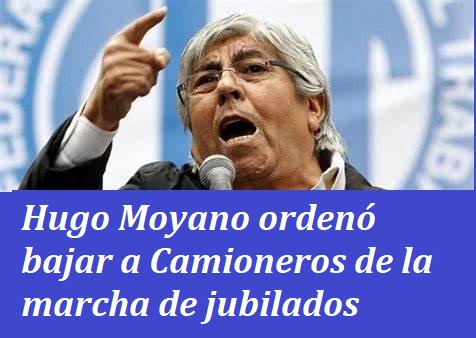 Hugo Moyano ordenó anoche a la dirigencia de Camioneros no participar de la marcha de jubilados de este miércoles frente al Congreso pese a haber dado su aval en la reunión del día previo de la «mesa chica» ampliada de la CGT. Con su decisión, el mayor de los Moyano también desoyó la resolución adoptada por la Confederación de Trabajadores del Transporte (CATT, cuyo gremio integra) en conjunto con la Unión General de Trabajadores del Transporte de adherir y asistir a la movilización de protesta.