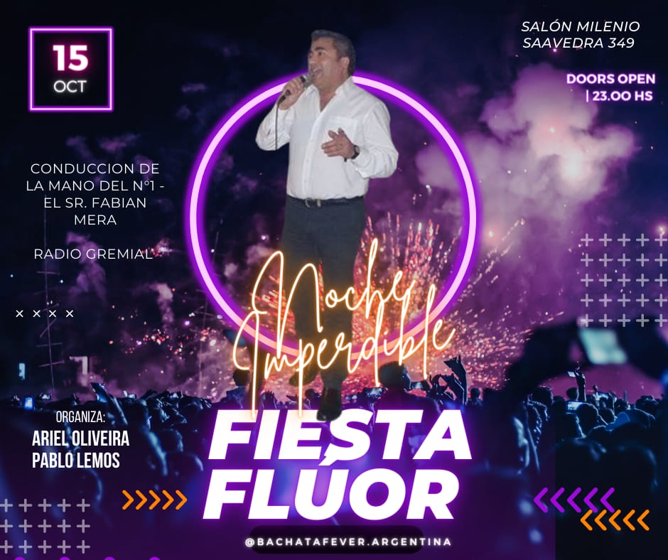EL PRÓXIMO SÁBADO SE REALIZA EL GRAN MEGAEVENTO DE BACHATA FEVER ARGENTINA EN BAHIA BLANCA PROVINCIA DE BUENOS AIRES ARGENTINA. LOCUCIÓN Y CONDUCCI{ON FABIÁN MERA Y PABLO LEMOS