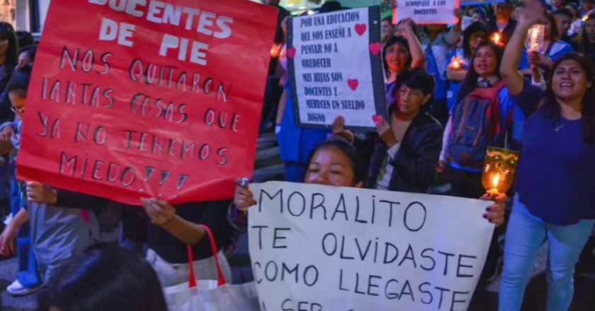 «Es repudiable la ola de descuentos del Gobierno saqueador de Gerardo Morales. El promedio es de 100 mil pesos por agente en el nivel medio y superior», señaló en un comunicado el Centro de Docentes de Enseñanza Media y Superior (Cedems) que viene realizar en la semana pasada un paro por 48 horas.