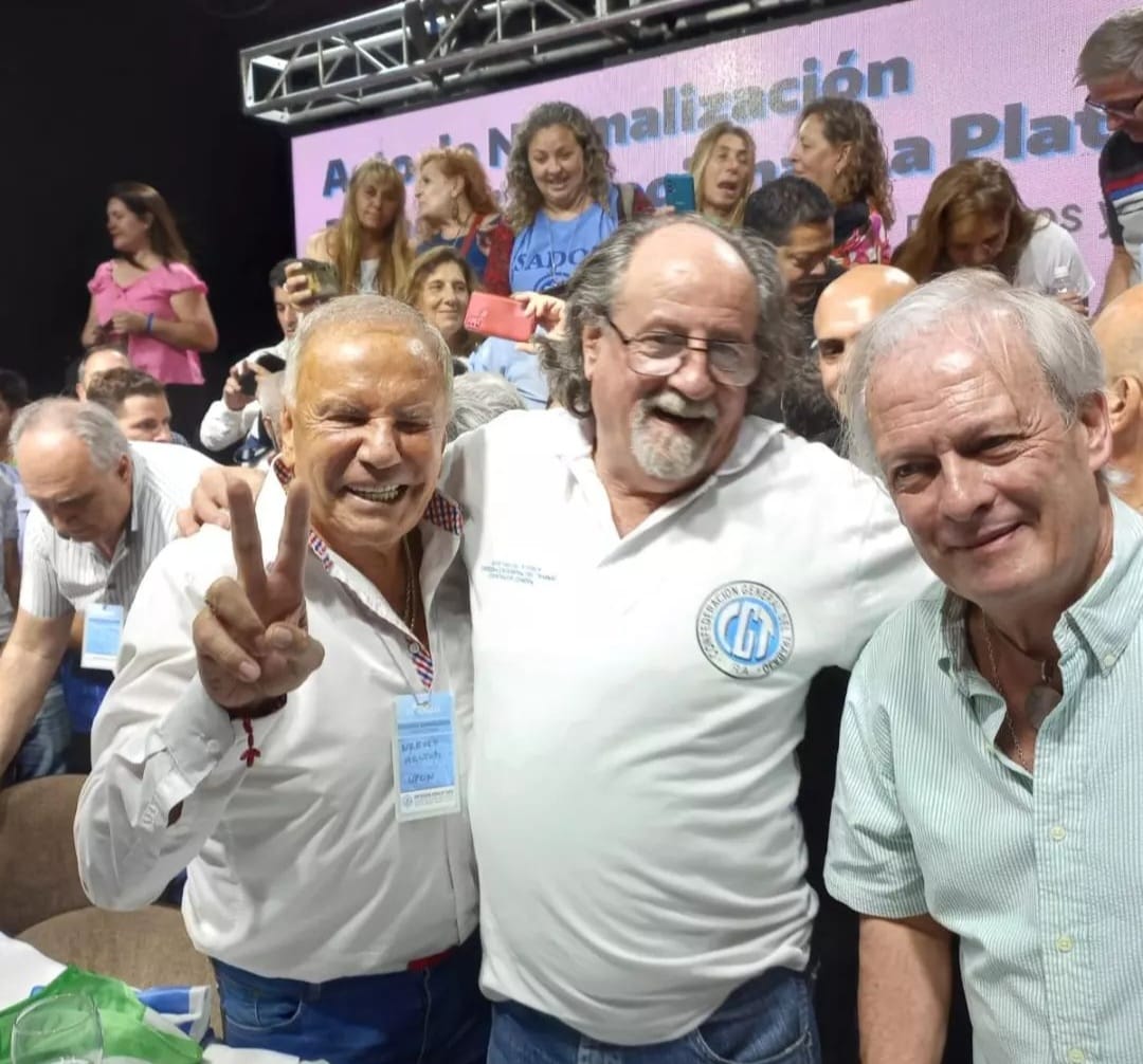 Debajo de ellos, otro tridente de secretarios Adjuntos con Nahuel Chancel (Petroleros), Pedro Borghini (Sanidad) y Darío Micheletti (SATSAID). Se recibieron en total 83 organizaciones que participaron del plenario normalizador después de 17 años. Lista UNIDAD número 53 ( por las delegaciones regionales normalizadas hal día de hoy) azul y blanca fue la que eligieron los congresales y asumieron en el día de ayer.