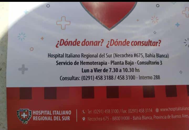 ActualidadLocalPedido solidario para una compañera que tuvo un infarto en estado crítico 7 dadores de cuálquier tipo y factor FABIAN MERA3 años atrás3 años atrás01 minutos FacebookXWhatsAppPedido solidario para una compañera que tuvo un infarto en estado crítico 7 dadores de cuálquier tipo y factor Se necesitan 7 dadores de cualquier tipo y factor a nombre de María Noe Salazar. Comparte esto: Haz clic para compartir en Facebook (Se abre en una ventana nueva) Facebook Haz clic para compartir en X (Se abre en una ventana nueva) X Haz clic para compartir en instagram (Se abre en una ventana nueva) instagram Me gusta esto:Me gusta Cargando... Navegación de entradas Anterior: LA UOLRA ACOMPAÑÓ LA ASUNCIÓN DE LAS NUEVAS MINISTRAS DE LA NACIÓNSiguiente: Fue trasladado a Buenos Aires el mecánico que resultó con quemaduras tras una explosión e incendio en Bahía Blanca