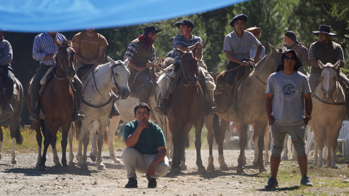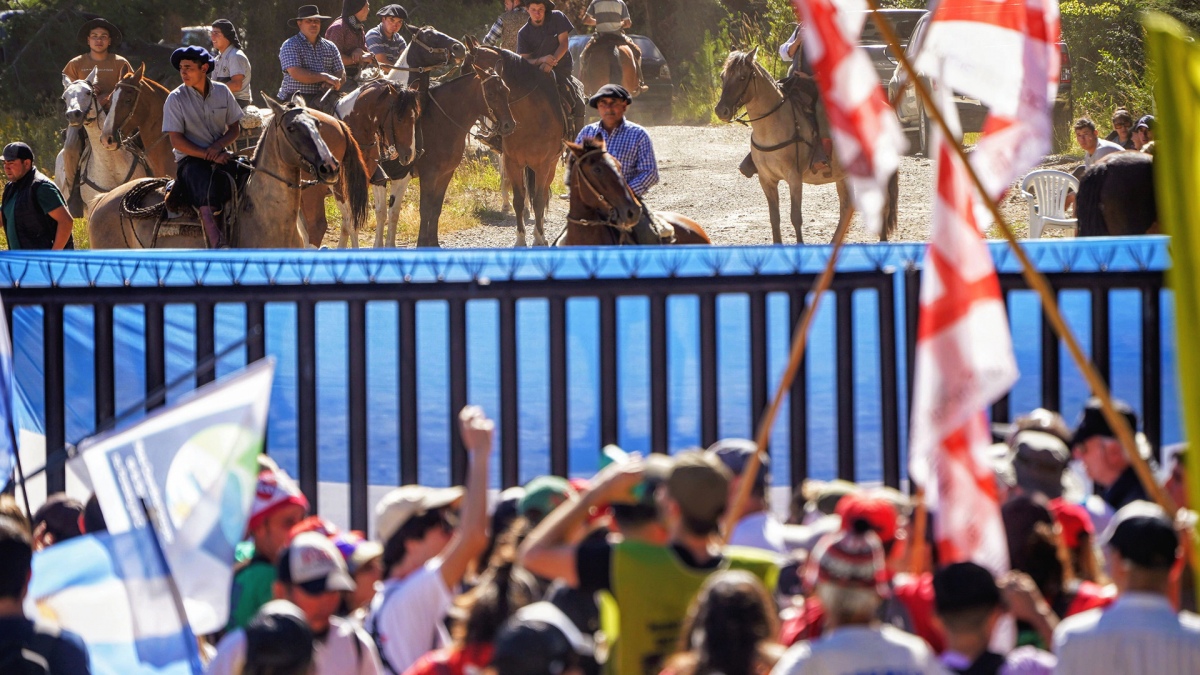 En el lugar, los caminantes se encontraron con un grueso portón de hierro, con candados y cadenas, como primera barrera para impedir el ingreso de manifestantes, en tanto que en el interior del Tacuifí se ubicaron más de 30 peones rurales montados a caballo, con rebenques y gomeras, y otros tantos hombres y mujeres a las órdenes de Lewis. Todos en una posición violenta y provocativa, con la presencia pasiva de una docena de efectivos de la Policía de Río Negro, aparentemente del lado de Lewis.