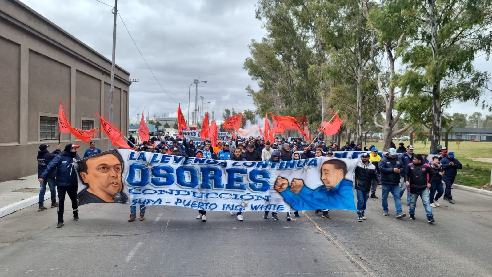 El secretario general marcelo ososres junto a la comisión direcriva y delegado de la posta inflamable entregaron al consorcio del puerto de bahia blanca a alberto carnevali un petitorio exigiendo se respeten los derechos de las y los trabajadores .