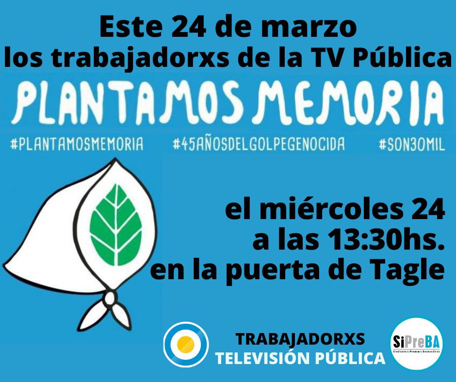 A pocos días de afrontar una causa denunciada por irregularidad administrativa, las y los trabajadores de la TV Pública con el Sindicato de Prensa Sipreba llevarán a cabo una actividad para conmemorar otro aniversario de la última dictadura. Se espera que también salgan a responder lo que identifican como «ataques desde la prensa».