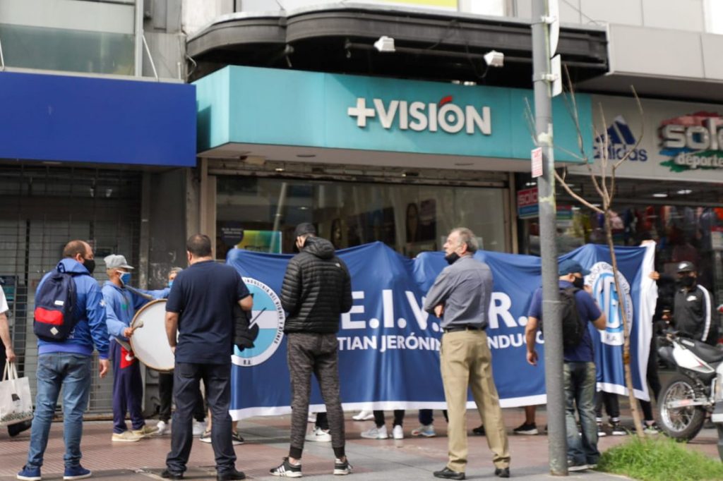 Desde las primeras horas de la mañana, el Sindicato de Empleados de la Industria del Vidrio y Afines (Seivara) despliega una medida de fuerza en la cadena de ópticas +Visión.