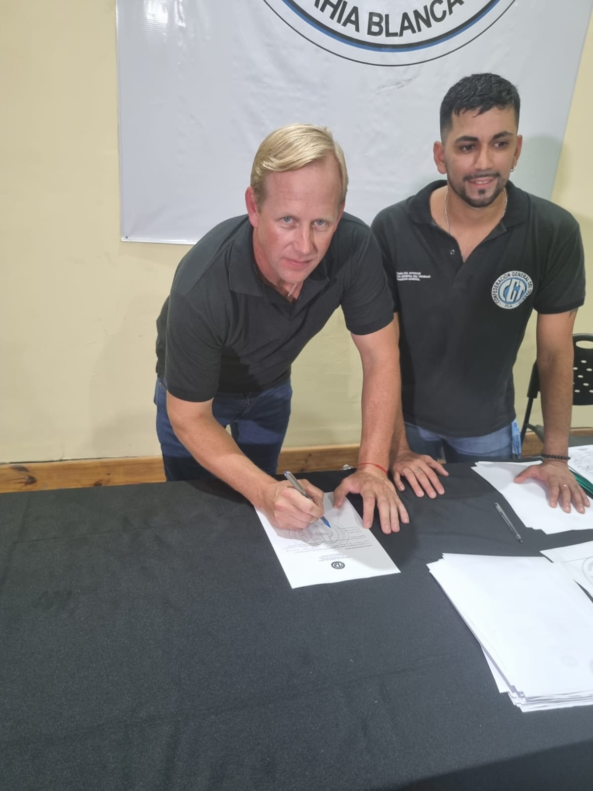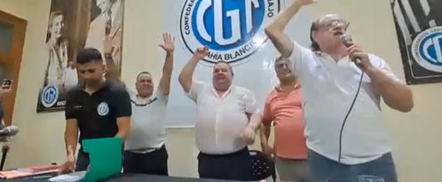 Hoy martes 14 de marzo día histórico en bahía blanca con la unidad de la cgt en defensa de las y los trabajadores conformada por un triunvirato Roberto Arcángel (camioneros), Carlos Bóer (uocra) y Miguel Aolita (comercio) y la llamada en vivo del gobernador Axel kicillof felicitando la unidad .