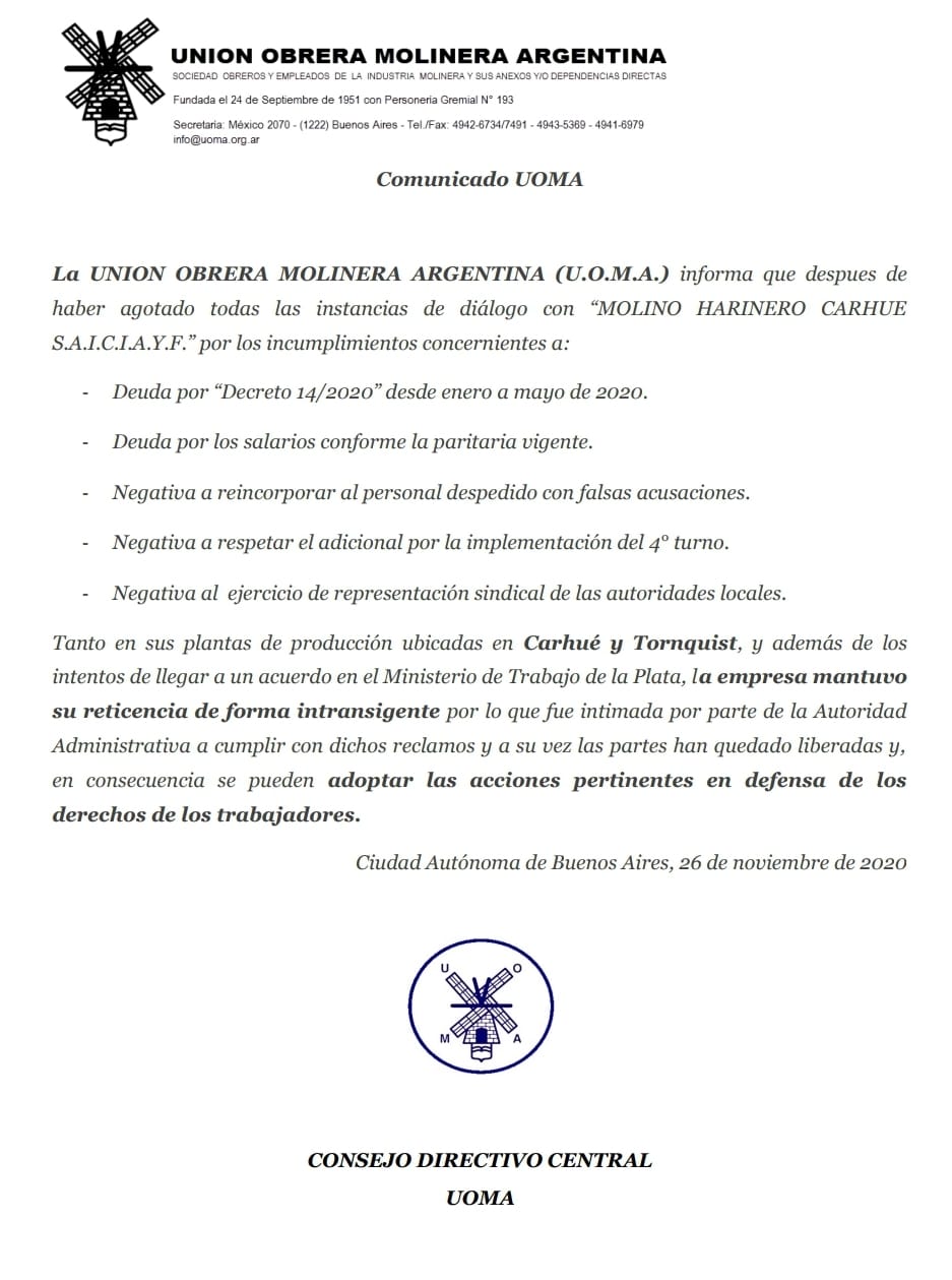RegionalesSindicalesUOMA// Conflicto en «Molino Harinero Carhue S.A.I.C.I.A.yF.» Radio Gremial5 años atrás01 minutos FacebookXWhatsAppSINDICALES//REGIONALES Comparte esto: Haz clic para compartir en Facebook (Se abre en una ventana nueva) Facebook Haz clic para compartir en X (Se abre en una ventana nueva) X Haz clic para compartir en instagram (Se abre en una ventana nueva) instagram Me gusta esto:Me gusta Cargando... Navegación de entradas Anterior: Presupuesto 2021 LÓPEZ Y RUIZ MALEC EXPUSIERON FRENTE A LOS GREMIOS LOS LINEAMIENTOS DEL PROYECTO DE LEY DE PRESUPUESTO 2021Siguiente: Aceiteros no descartan un paro nacional luego del fracaso en las negociaciones paritarias